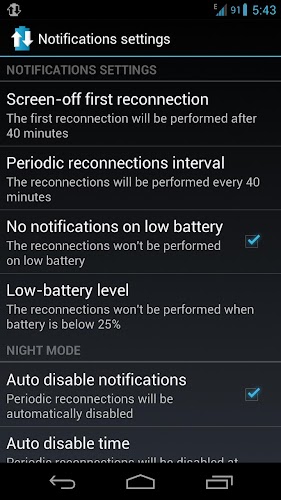 Note: battery saving set higher re-connection interval disable it ( lose notification)