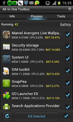 Kw: toolbox, all-in-one toolbox, all-in-one tool, all-in-one tool box, all-in-one tools, memory, ram, booster, optimize, boost, optimization, task killer, task manager, atk, taskiller, memory booster, ram booster, battery, save battery, battery booster, system manager, process kill, speed up, system speed, app killer, system panel, memory cleaner, android booster, android optimizer, cache cleaner, history eraser, call log cleaner, message cleaner, app2sd, SD file manager, installer, uninstaller, startup manager