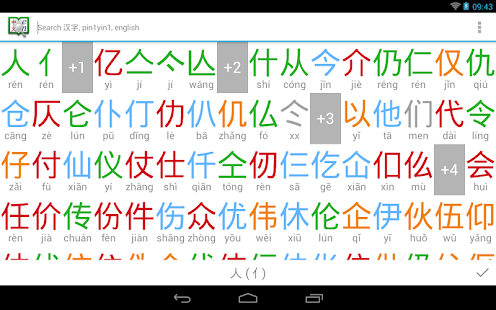★ Br Homescreen Widget design (Android 3.1+ only). Resizable auto-sizes widget. Supports tone coloring, custom fonts, Pinyin, Zhuyin mode. Swipe up/down!